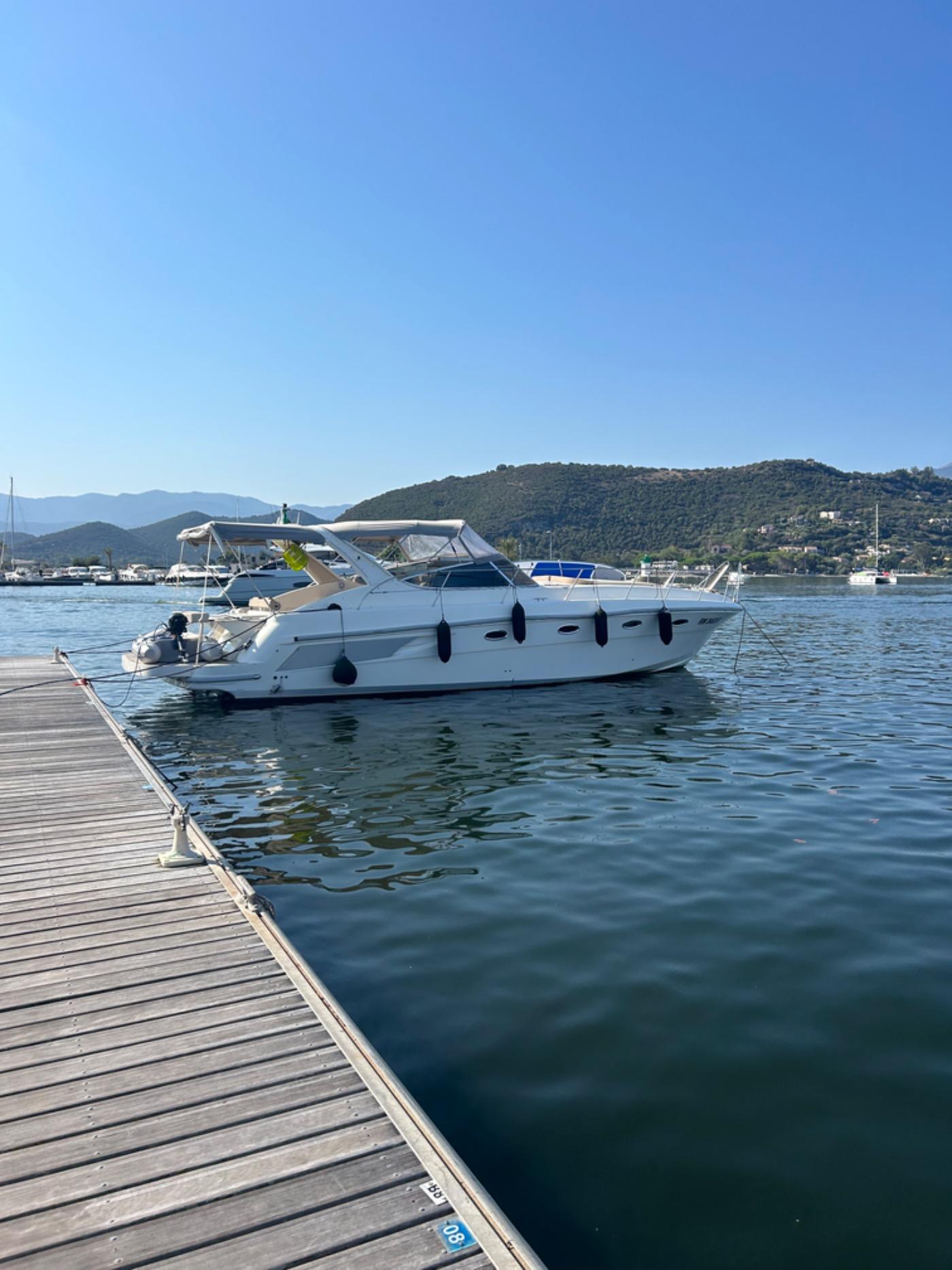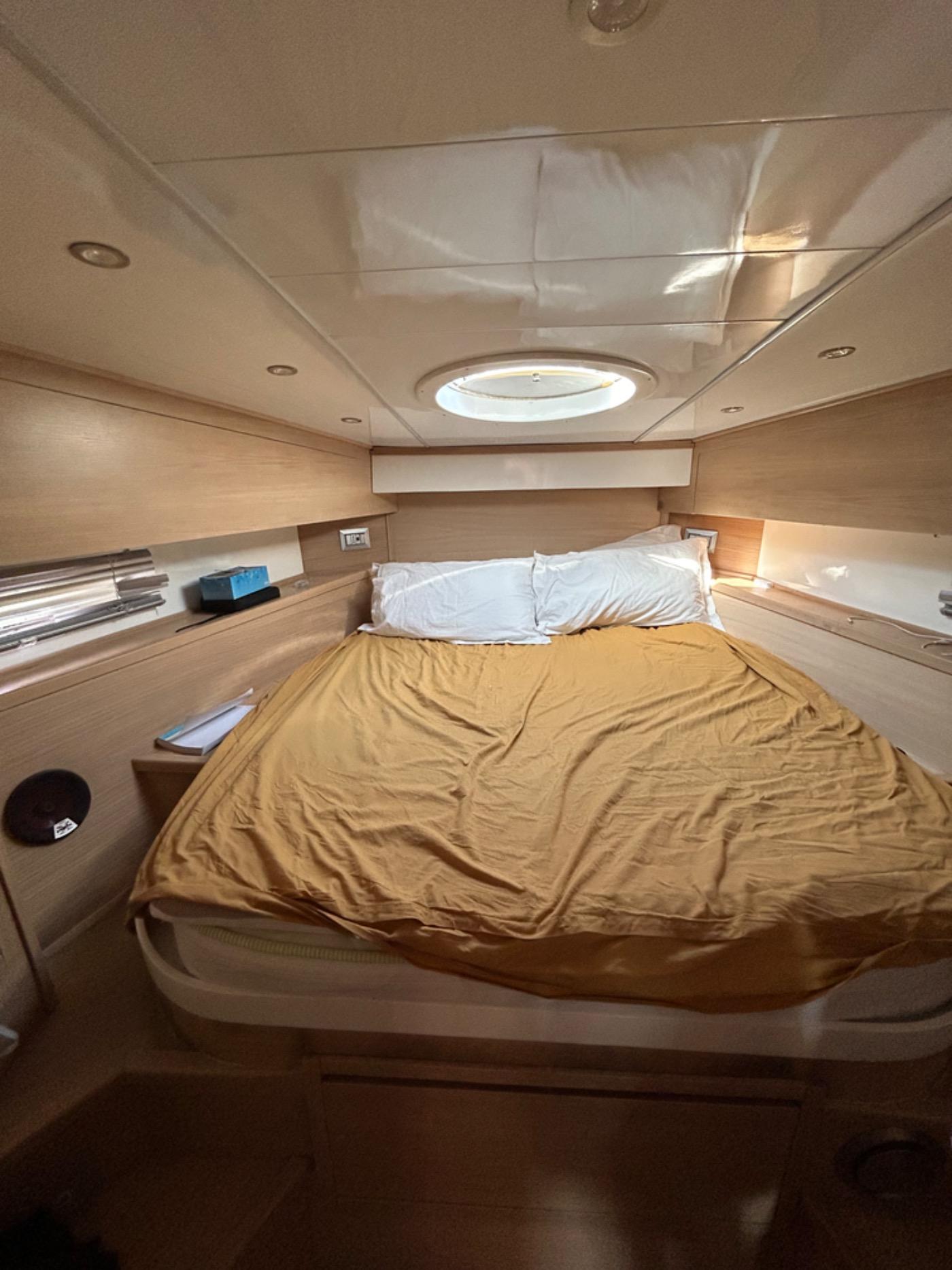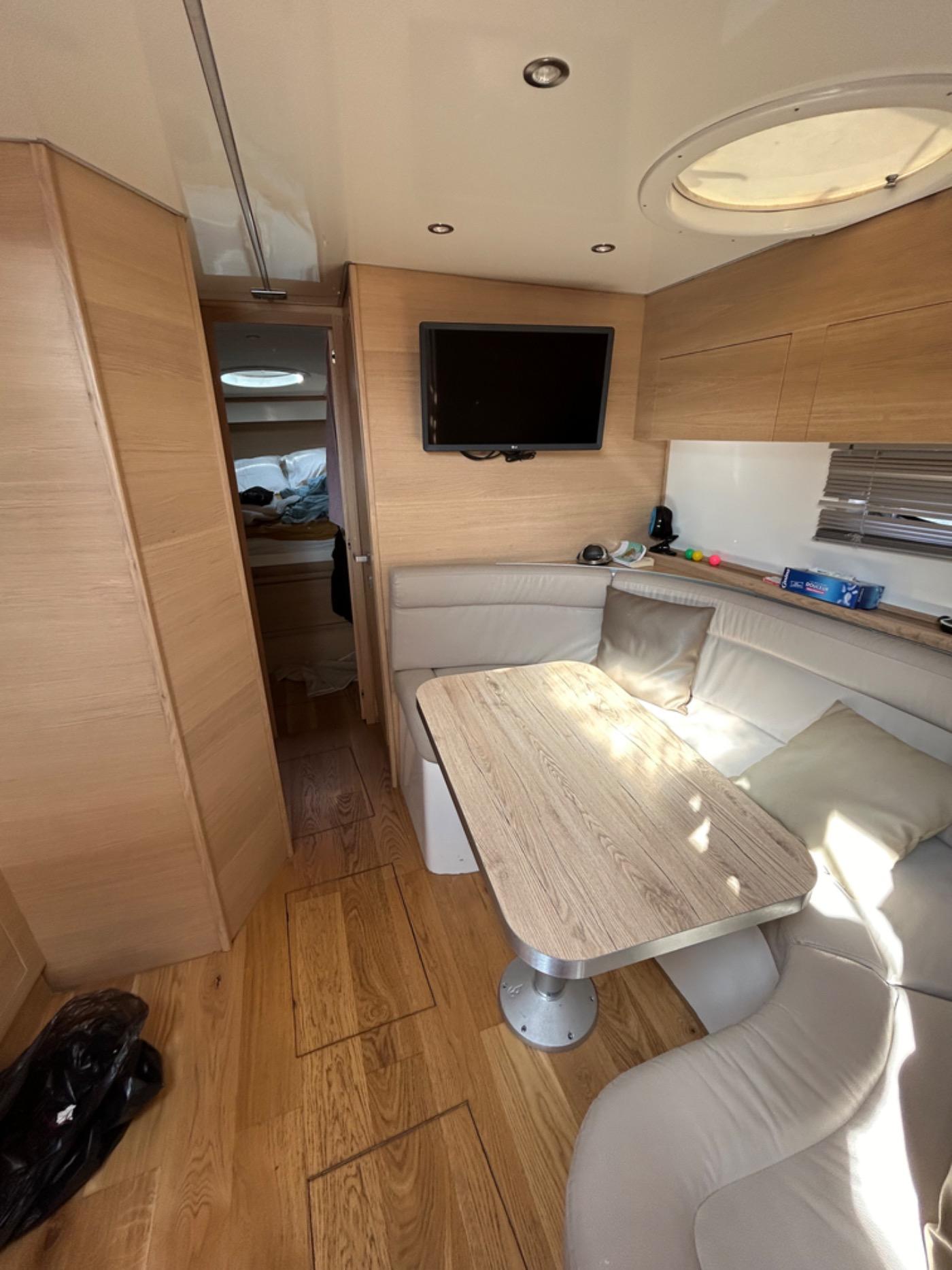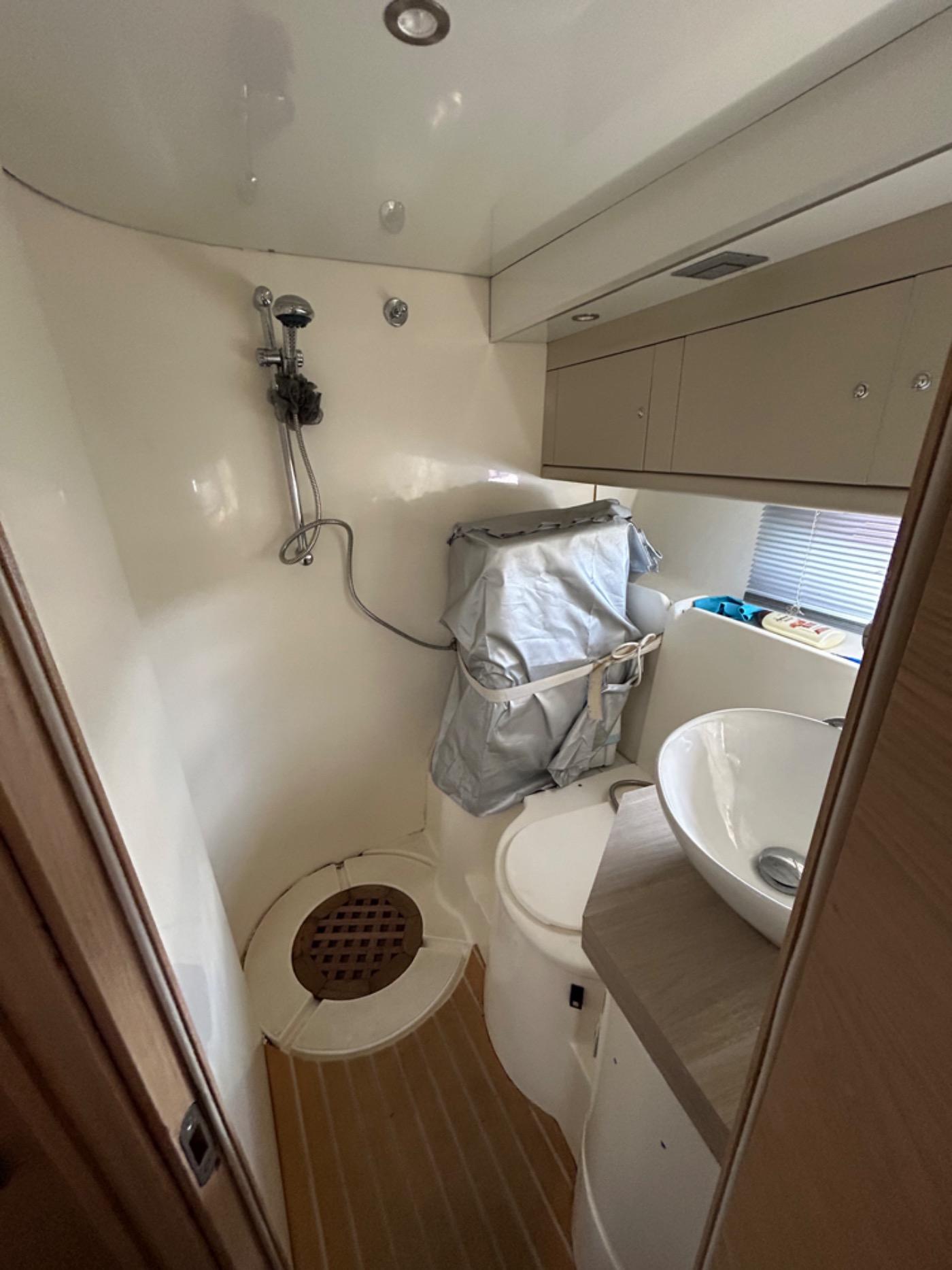 Le bateau dispose de 3 cabines doubles et deux salles de bain, salon et cuisine. 4 Télés à bord, clim réversible, carré en teck en très bon état, gps et pilote auto de 2021, scellerie très propre, 2 frigos, cuisine et évier exterieur, annexe et moteur neufs de juillet 2024