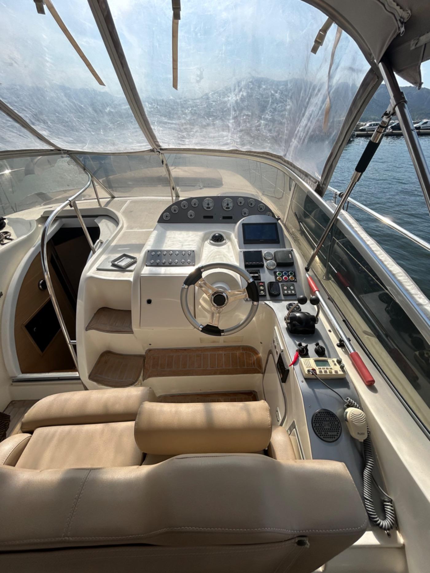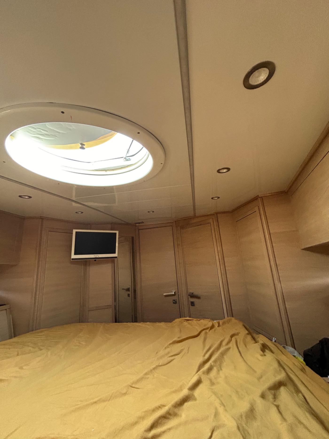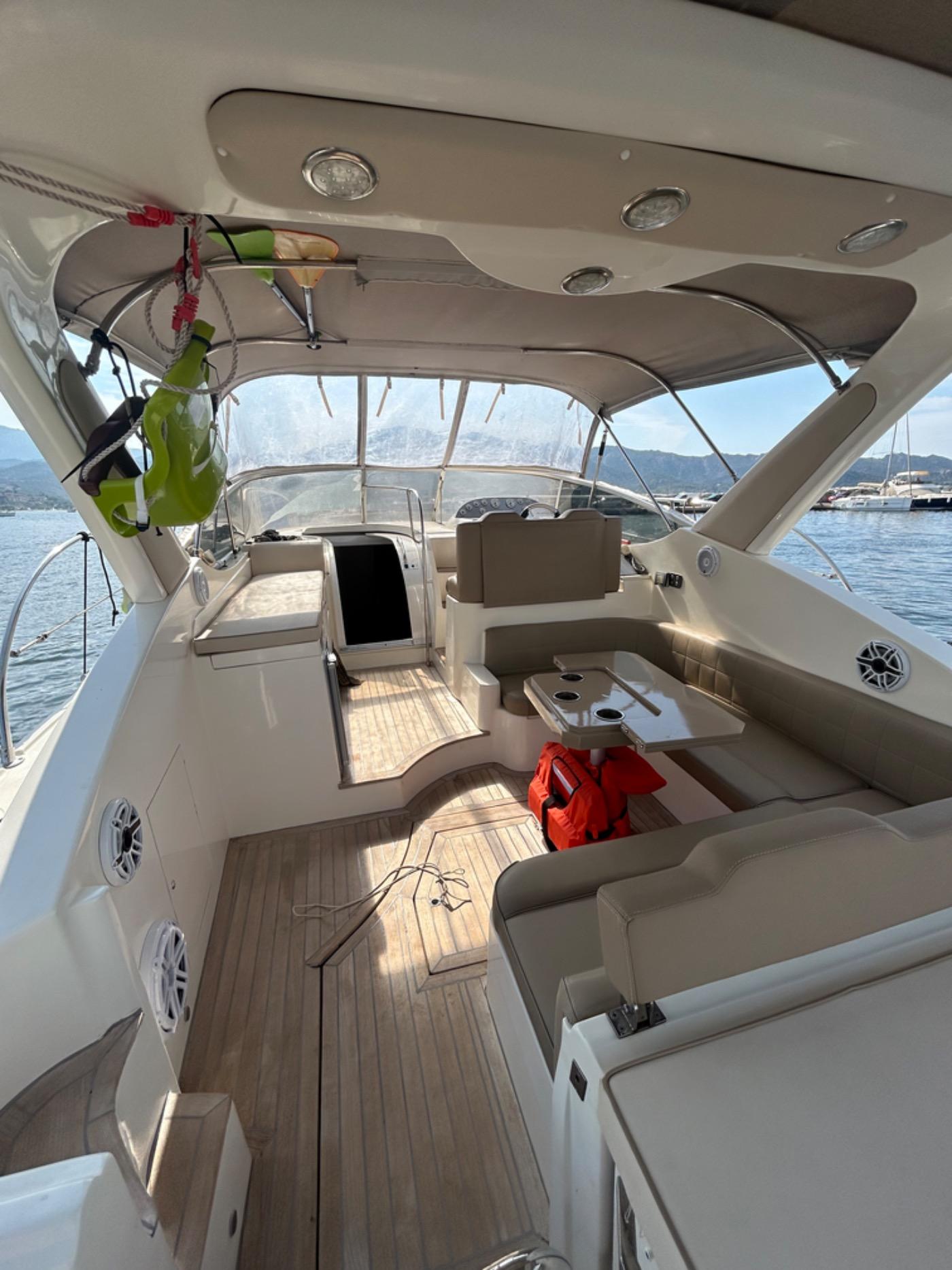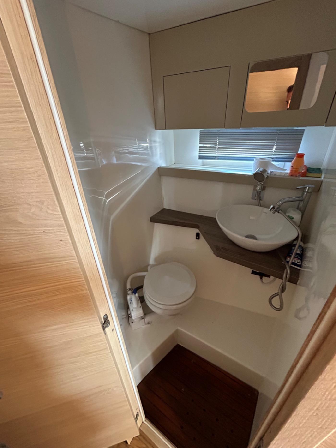 Le bateau dispose de 3 cabines doubles et deux salles de bain, salon et cuisine. 4 Télés à bord, clim réversible, carré en teck en très bon état, gps et pilote auto de 2021, scellerie très propre, 2 frigos, cuisine et évier exterieur, annexe et moteur neufs de juillet 2024