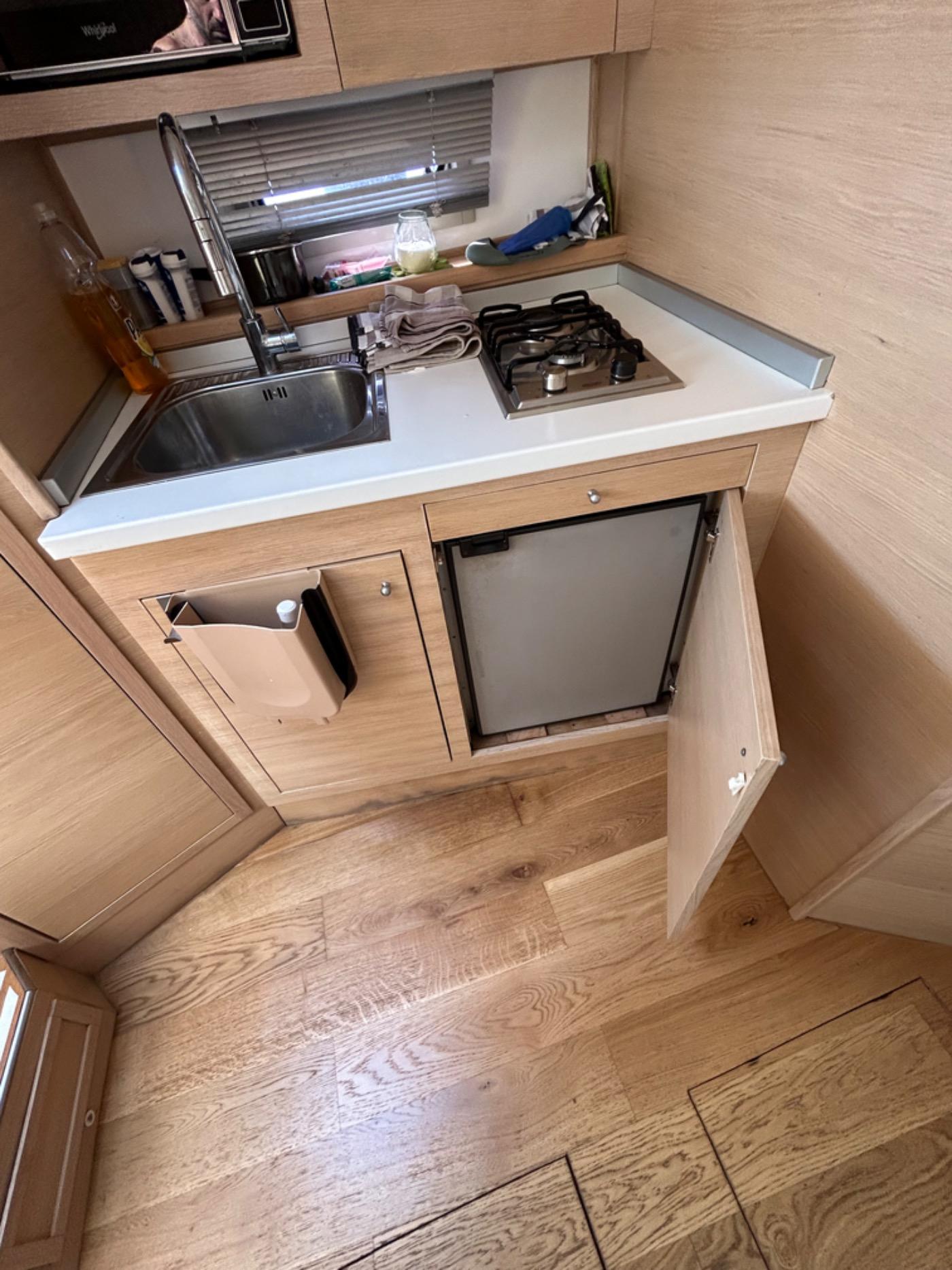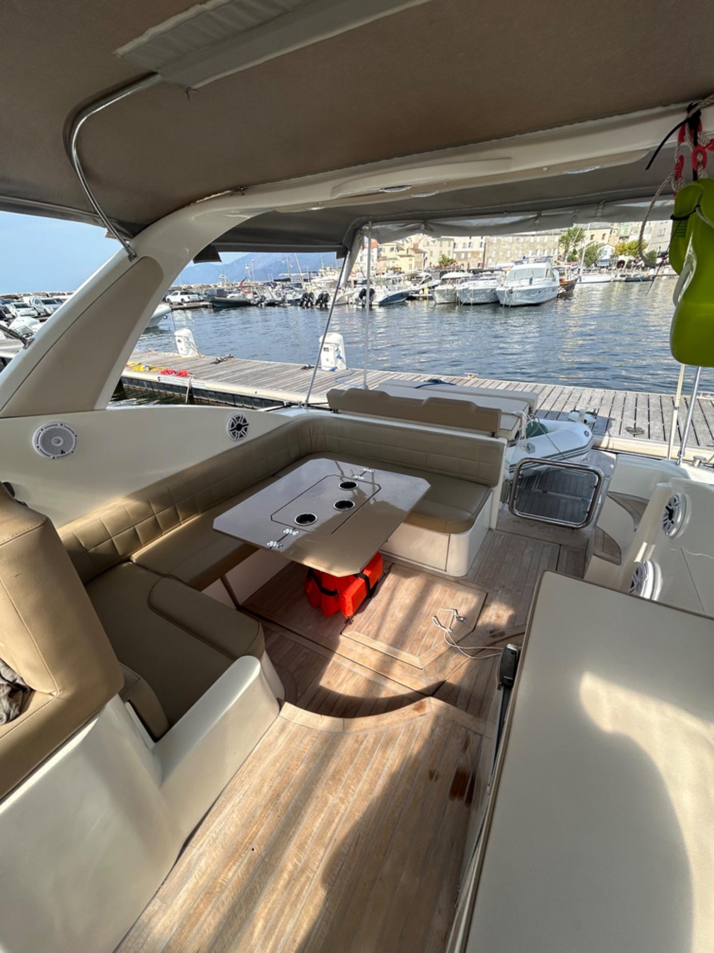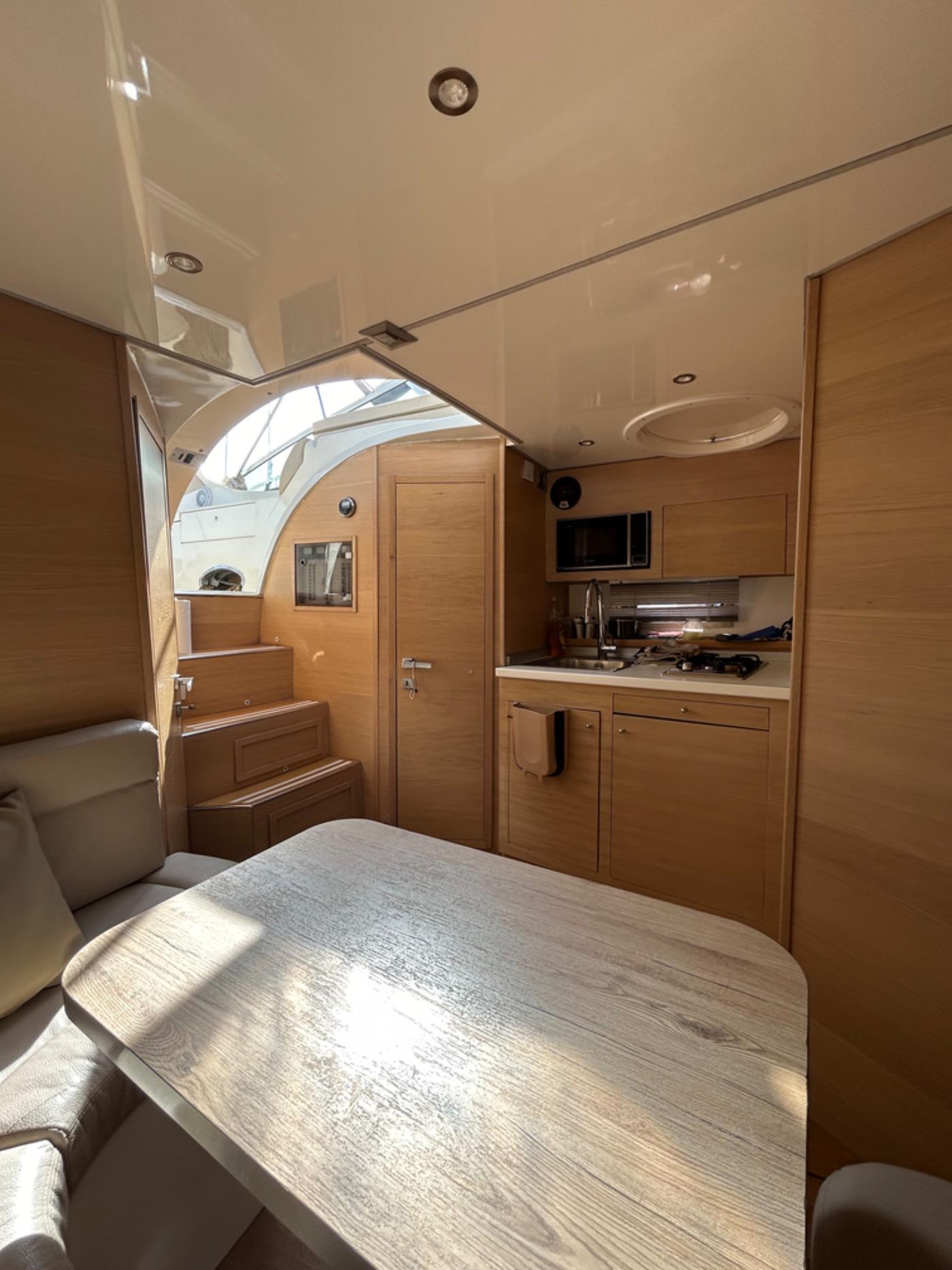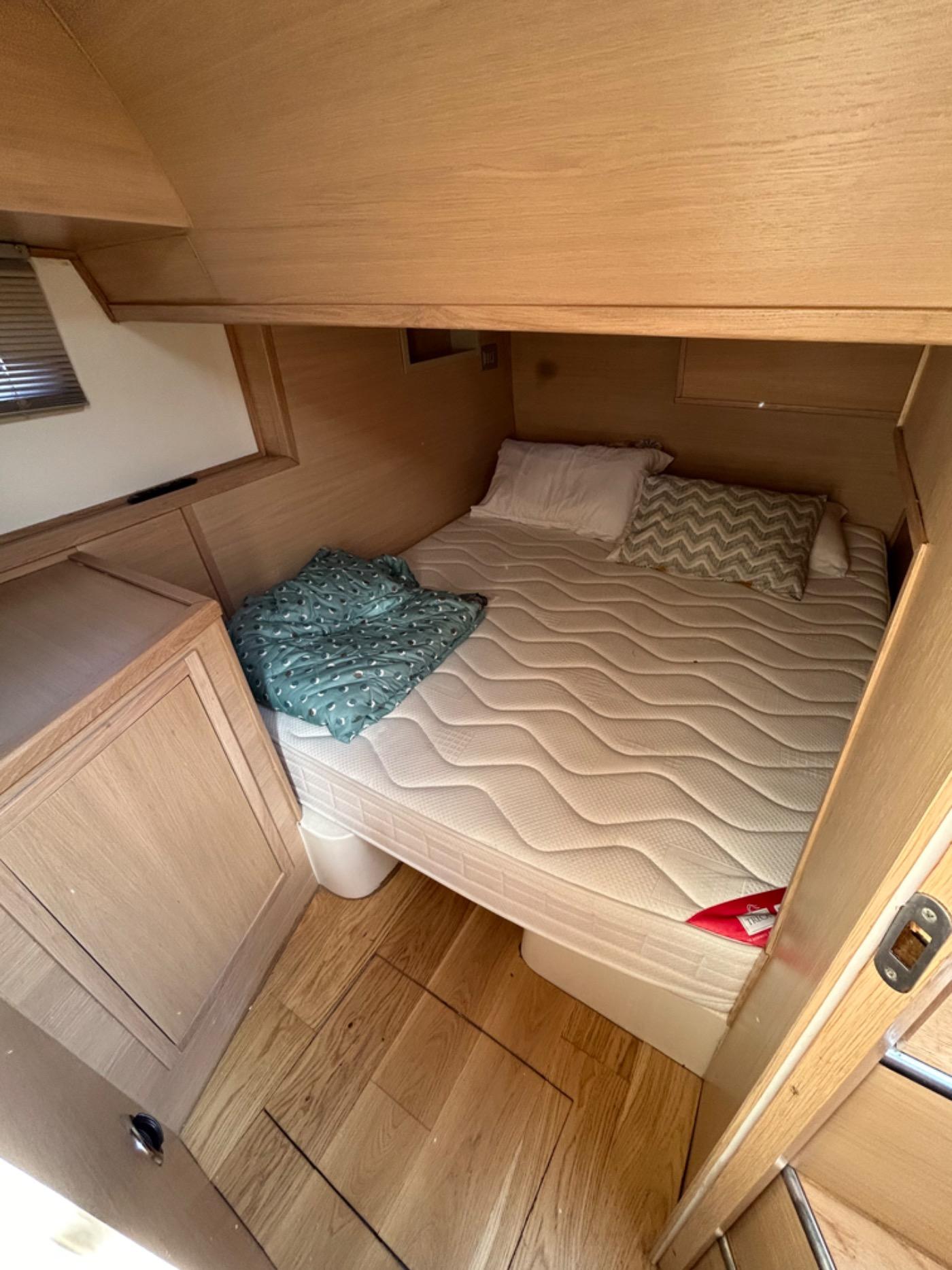 Le bateau dispose de 3 cabines doubles et deux salles de bain, salon et cuisine. 4 Télés à bord, clim réversible, carré en teck en très bon état, gps et pilote auto de 2021, scellerie très propre, 2 frigos, cuisine et évier exterieur, annexe et moteur neufs de juillet 2024